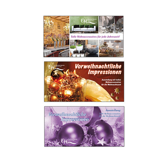 Zeitungsanzeige, Einladungs-Postkarte, Klappflyer