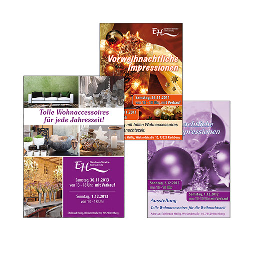 Zeitungsanzeige, Einladungs-Postkarte, Klappflyer
